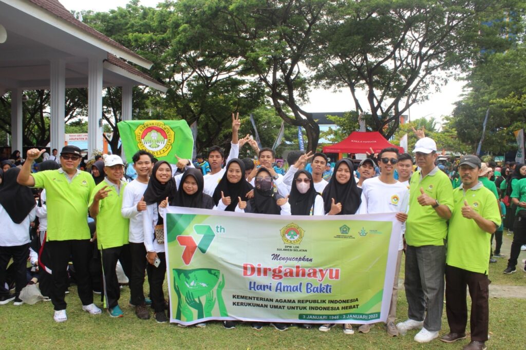 Di Lapangan Seruni, DPW LDII Sulawesi Selatan mengirimkan karangan bunga berisi ucapan selamat atas pelaksanaan Hari Amal Bhakti ke-77 Kementerian Agama. Jalan sehat mengambil start dan finis di Lapangan Seruni. Kementerian Agama mengambil tema Hari Amal Bhakti tahun 2023 “Kerukunan Umat untuk Indonesia Hebat”.