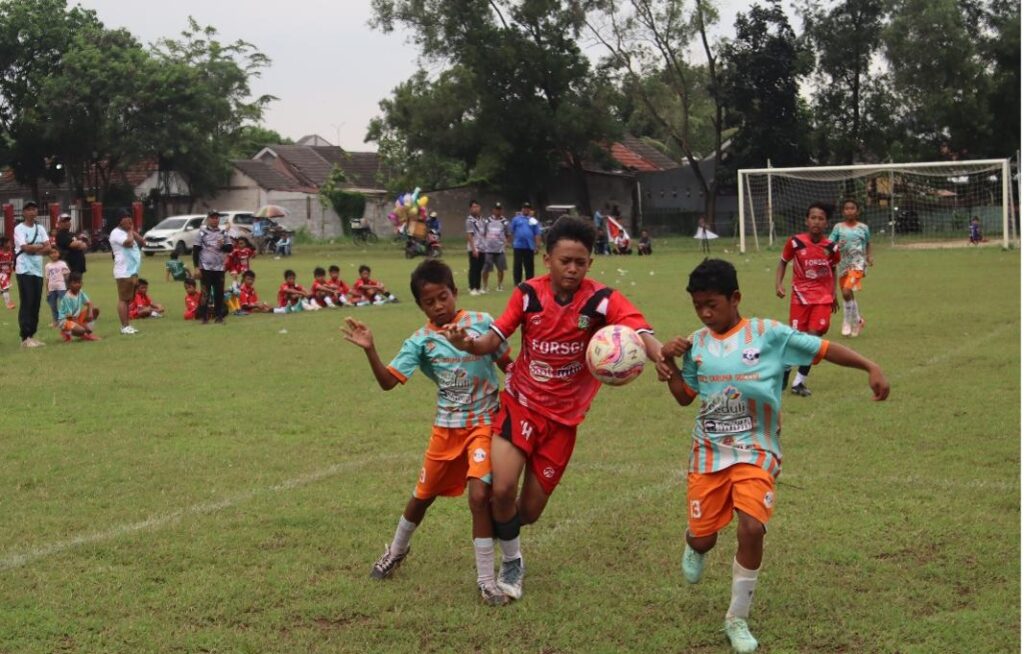 Pesepakbola Muda LDII Kabupaten Bekasi bersama FORSGI (jersey berwarna merah) ikuti Turnamen Piala Kemenpora 2025 ASUMSI Wilayah 3 Bekasi Raya